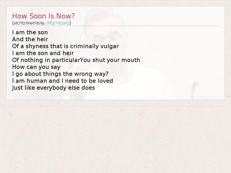 А как ты думаешь, о чем песня "How Soon Is Now?" ?