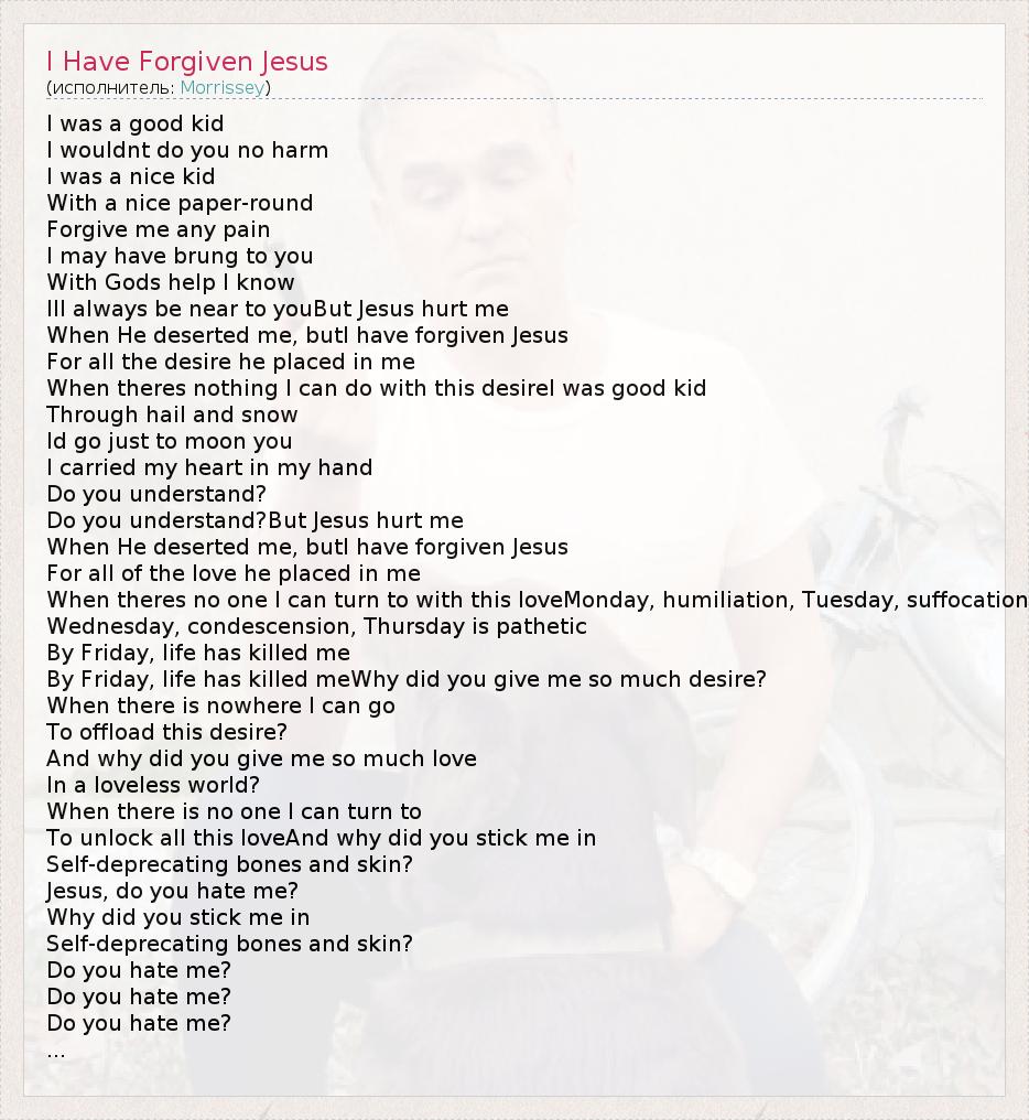 А как ты думаешь, о чем песня "I Have Forgiven Jesus" ?