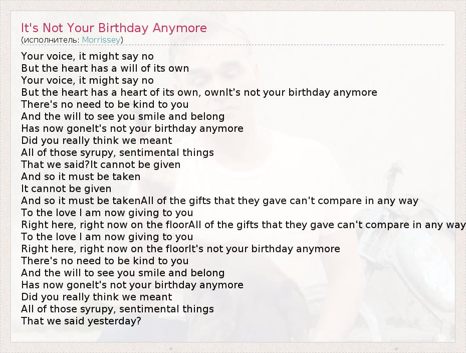 А как ты думаешь, о чем песня "It's Not Your Birthday Anymore" ?