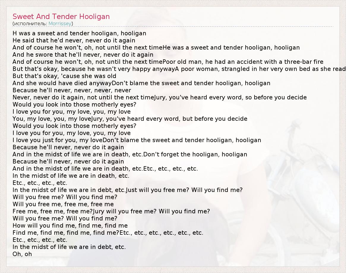 А как ты думаешь, о чем песня "Sweet And Tender Hooligan" ?
