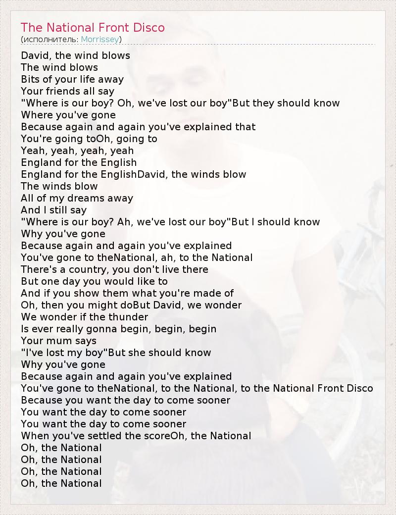 ГлавнаяИсполнителиMorrisseyThe National Front Disco