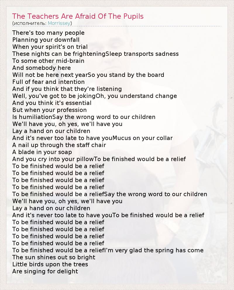 ГлавнаяИсполнителиMorrisseyThe Teachers Are Afraid Of The Pupils