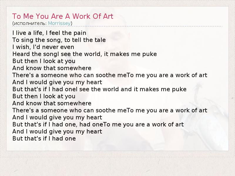 ГлавнаяИсполнителиMorrisseyTo Me You Are A Work Of Art