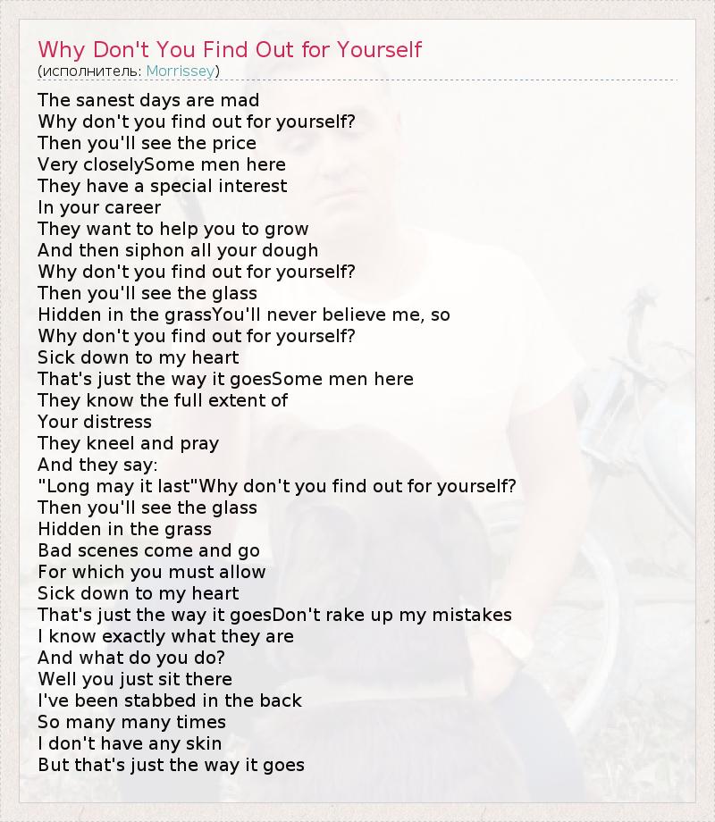 А как ты думаешь, о чем песня "Why Don't You Find Out for Yourself" ?