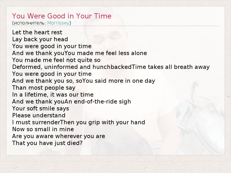 ГлавнаяИсполнителиMorrisseyYou Were Good in Your Time