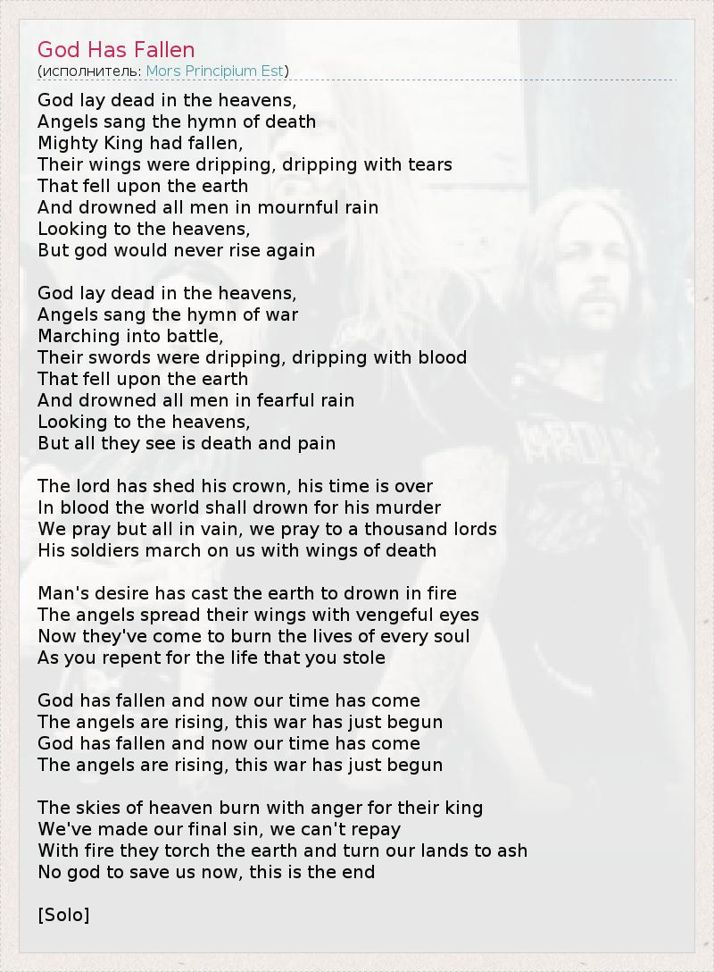 А как ты думаешь, о чем песня "God Has Fallen" ?