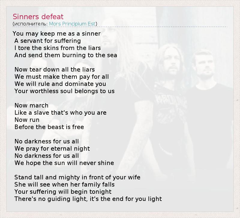 А как ты думаешь, о чем песня "Sinners defeat" ?