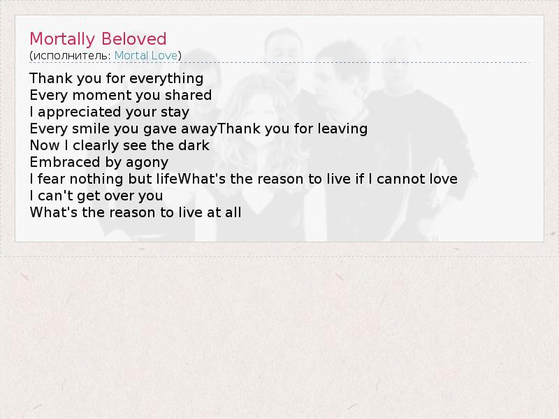 А как ты думаешь, о чем песня "Mortally Beloved" ?