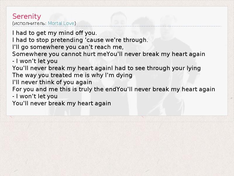 Это интересно:Норвежский квинтет MORTAL LOVE был образован в начале 2000 года. Состав группы с момента ее образования не изменился и по сей день. Это: Cat, Rain 6, Lev, Gabriah и Damous. Основными элементами творчества MORTAL LOVE избрали: доступность музыки по восприятию и романтизм, что и было воплощено в жизнь во многом благодаря удивительному и проникновенному вокалу Cat.Первая демо-запись группы, в которую вошли 8 треков,... продолжение