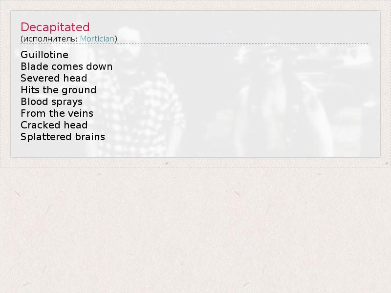 А как ты думаешь, о чем песня "Decapitated" ?