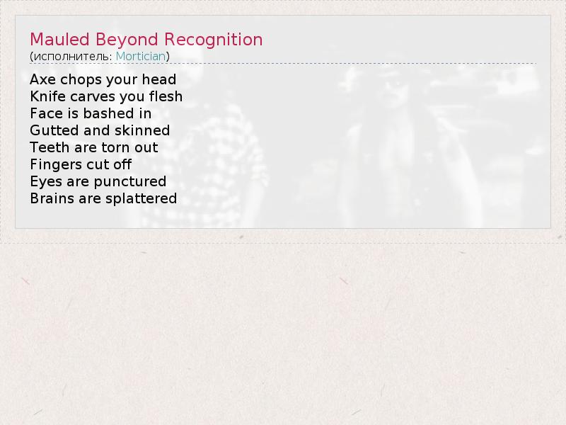 А как ты думаешь, о чем песня "Mauled Beyond Recognition" ?