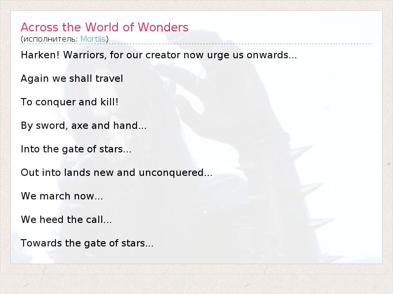 А как ты думаешь, о чем песня "Across the World of Wonders" ?