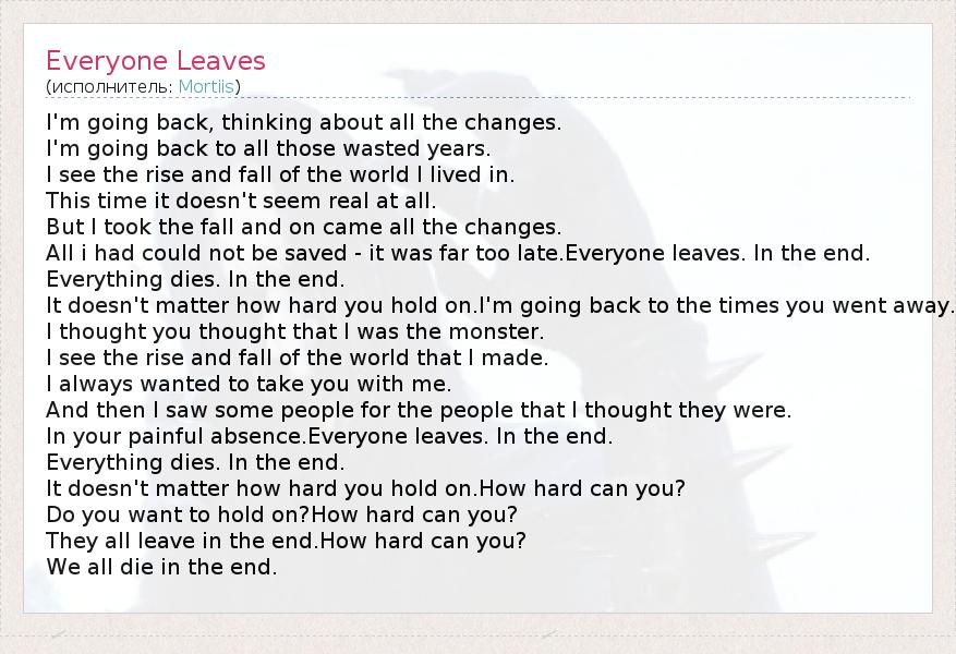 А как ты думаешь, о чем песня "Everyone Leaves" ?