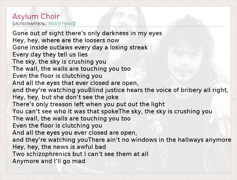А как ты думаешь, о чем песня "Asylum Choir" ?