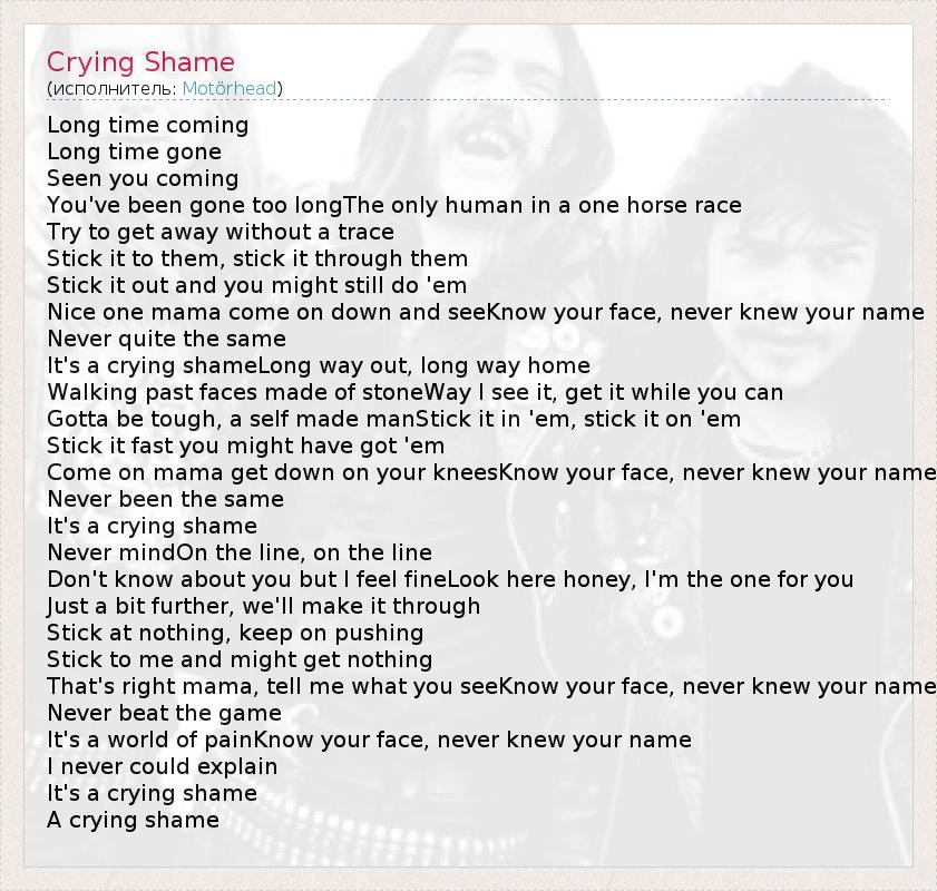 А как ты думаешь, о чем песня "Crying Shame" ?