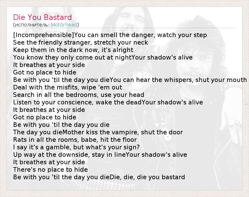А как ты думаешь, о чем песня "Die You Bastard" ?