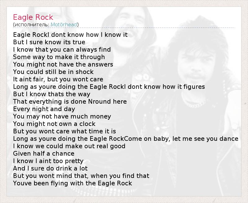 А как ты думаешь, о чем песня "Eagle Rock" ?