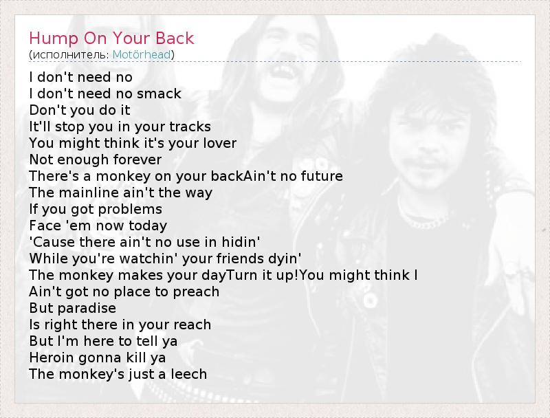 А как ты думаешь, о чем песня "Hump On Your Back" ?