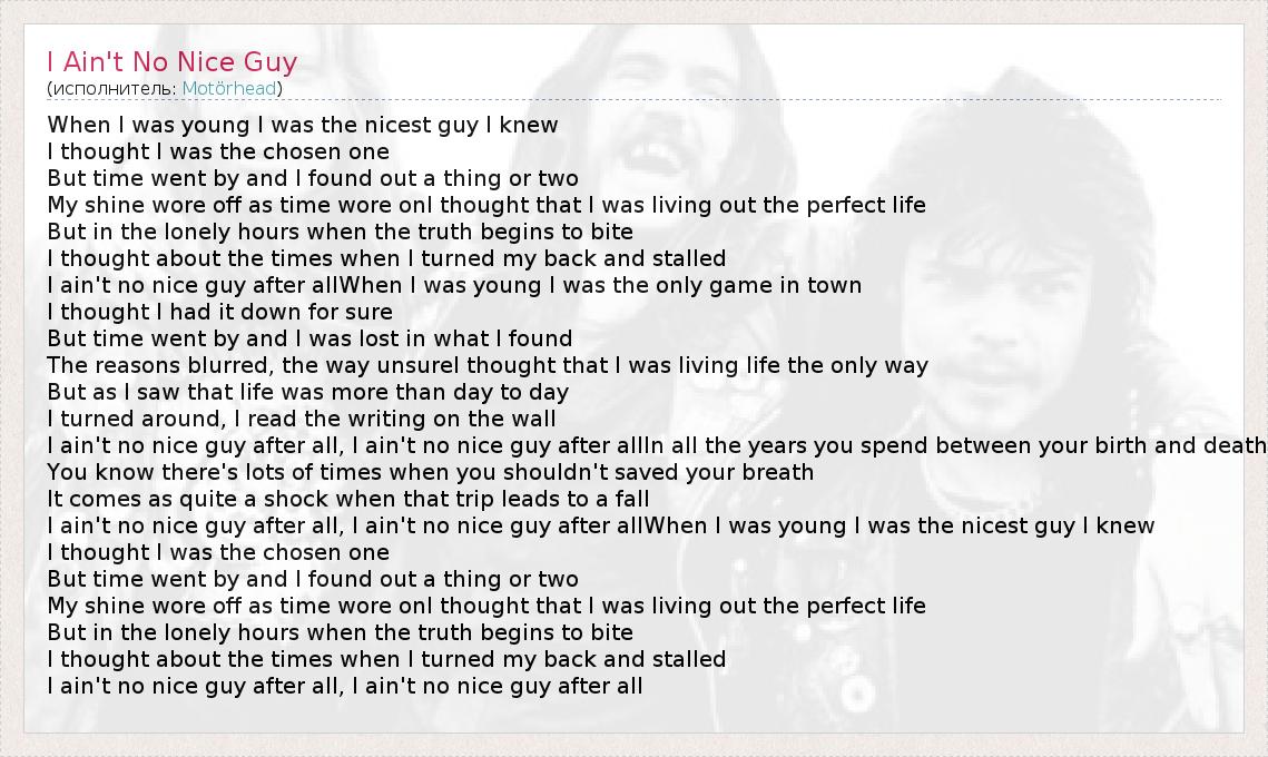 I ain't no nice guy after all, I ain't no nice guy after allWhen I was young I was the nicest guy I knew