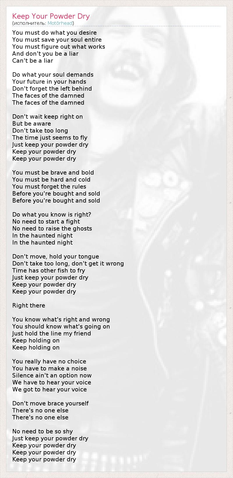 А как ты думаешь, о чем песня "Keep Your Powder Dry" ?