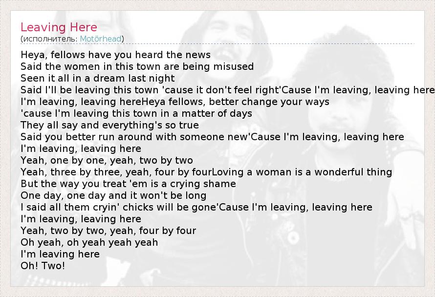 А как ты думаешь, о чем песня "Leaving Here" ?