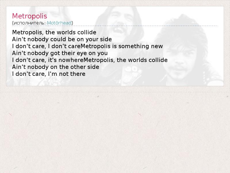 Это интересно:Одна из наиболее харизматичных британских хард-рок-групп, оказавшая огромное влияние на развитие всей тяжёлой музыки, в частности, на возникновение спид-металла. Кроме того, Motörhead в свое время была признана «самой громкой группой» (мощность звука в децибелах). Многие звезды считают за честь сыграть с Motörhead на одной сцене, и концерты группы почти никогда не обходятся без присутствия специальных... продолжение