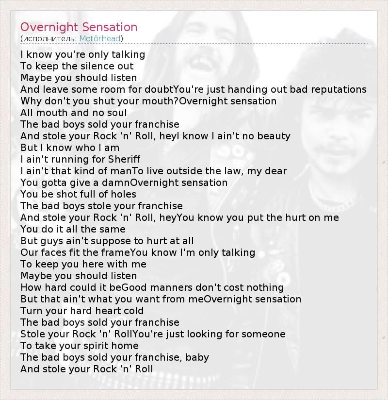 А как ты думаешь, о чем песня "Overnight Sensation" ?