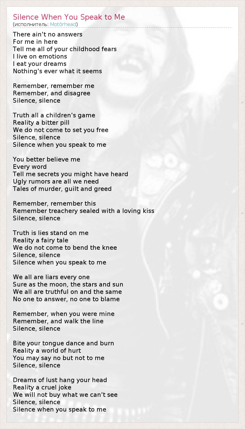 ГлавнаяИсполнителиMotörheadSilence When You Speak to Me
