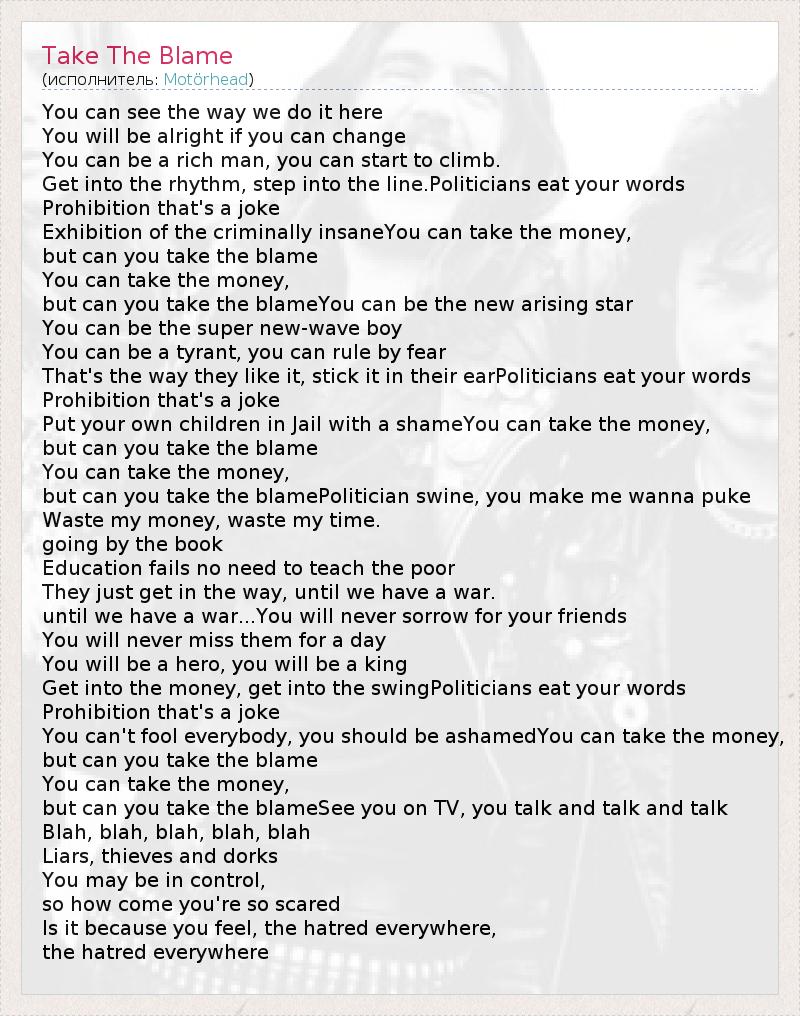 А как ты думаешь, о чем песня "Take The Blame" ?