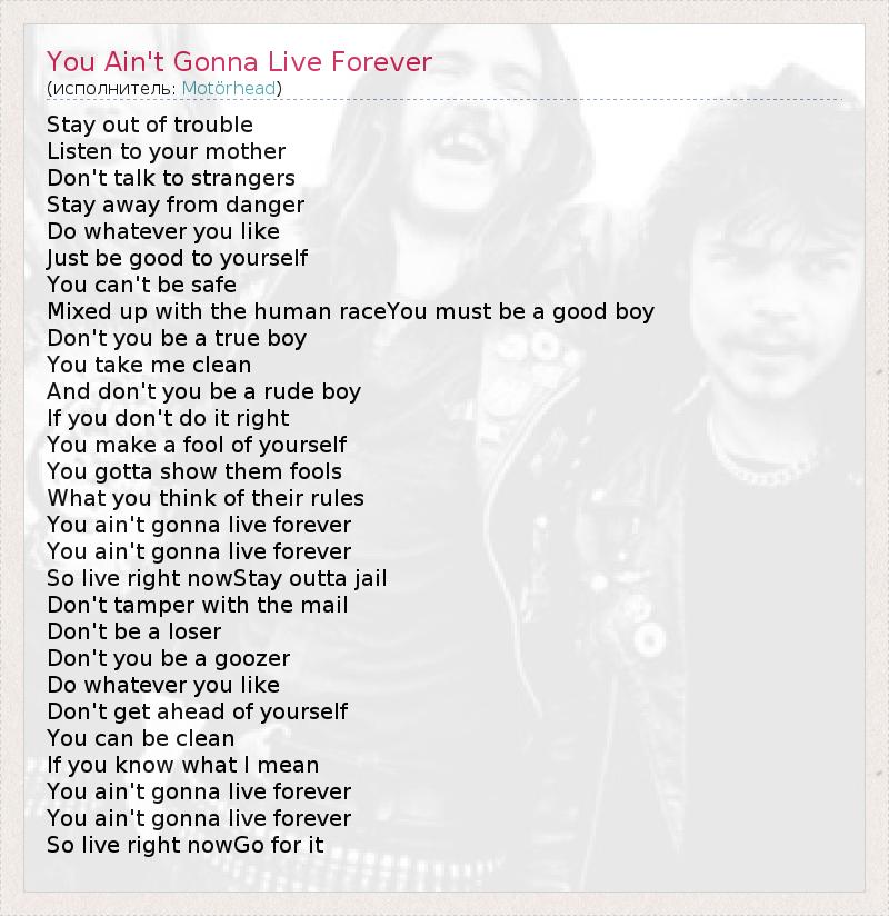 ГлавнаяИсполнителиMotörheadYou Ain't Gonna Live Forever