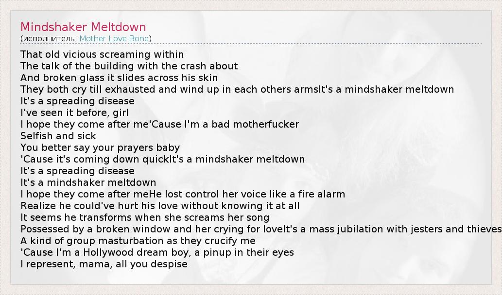 А как ты думаешь, о чем песня "Mindshaker Meltdown" ?