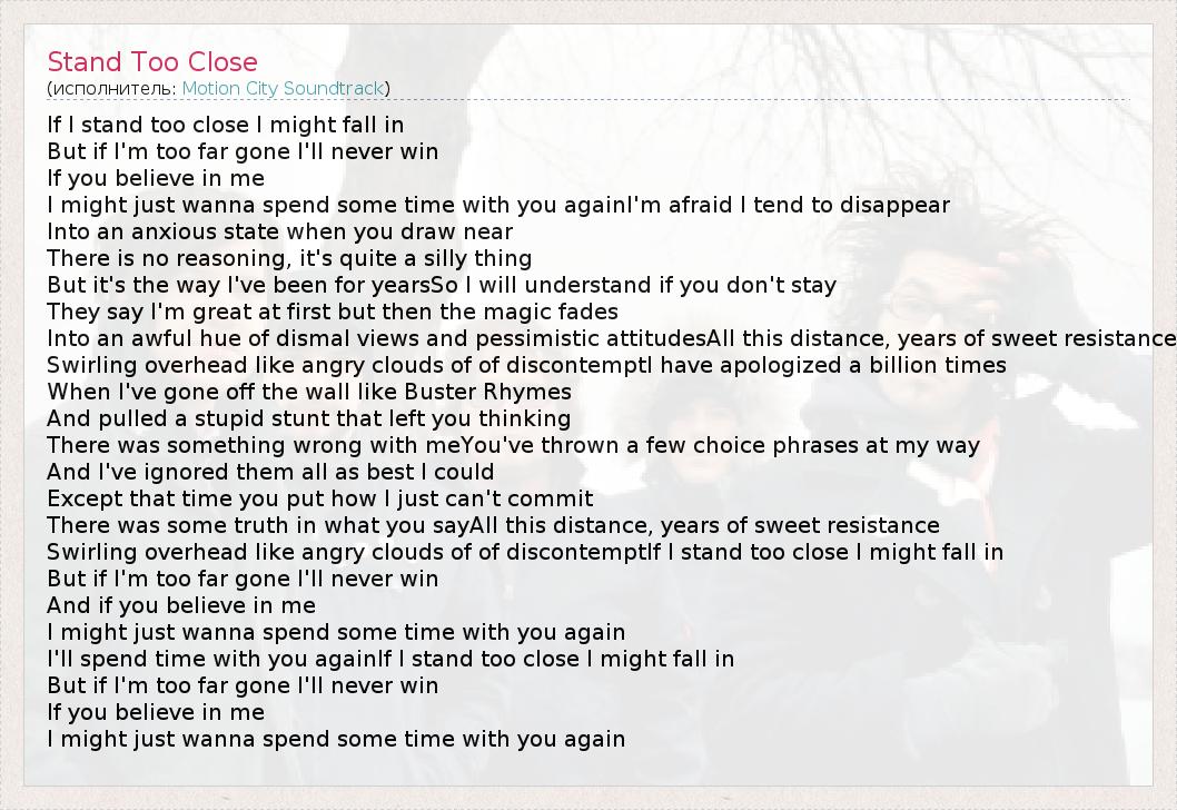 А как ты думаешь, о чем песня "Stand Too Close" ?