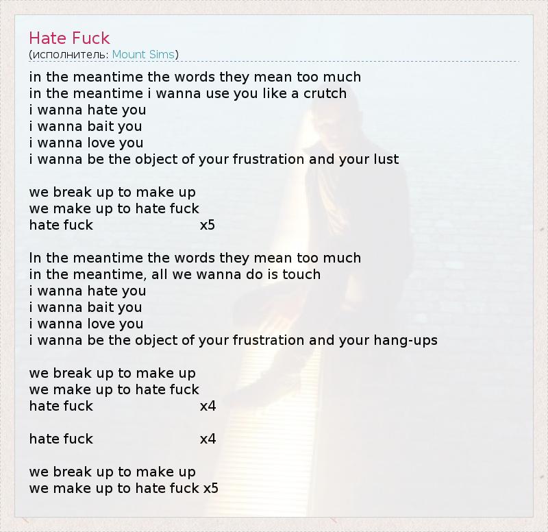 А как ты думаешь, о чем песня "Hate Fuck" ?