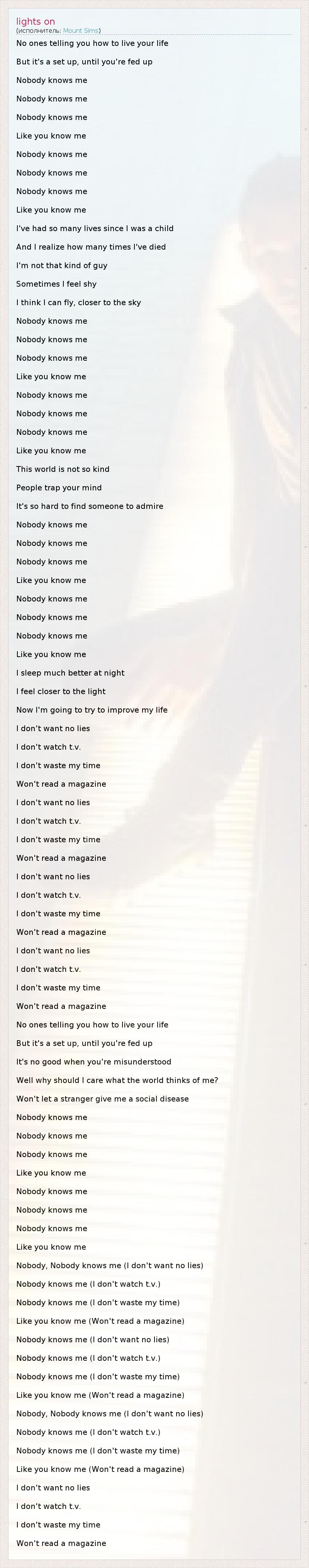 Nobody, Nobody knows me (I don't want no lies)