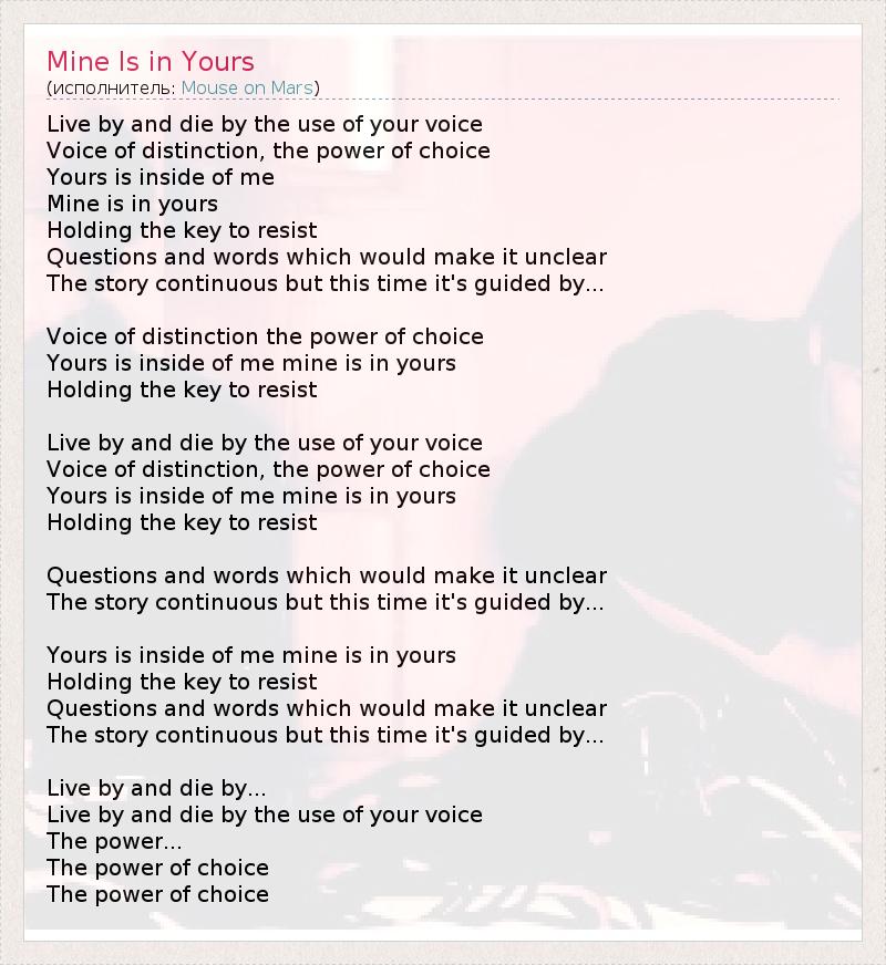 А как ты думаешь, о чем песня "Mine Is in Yours" ?