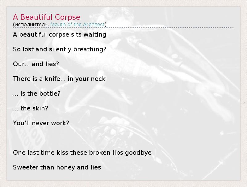 А как ты думаешь, о чем песня "A Beautiful Corpse" ?