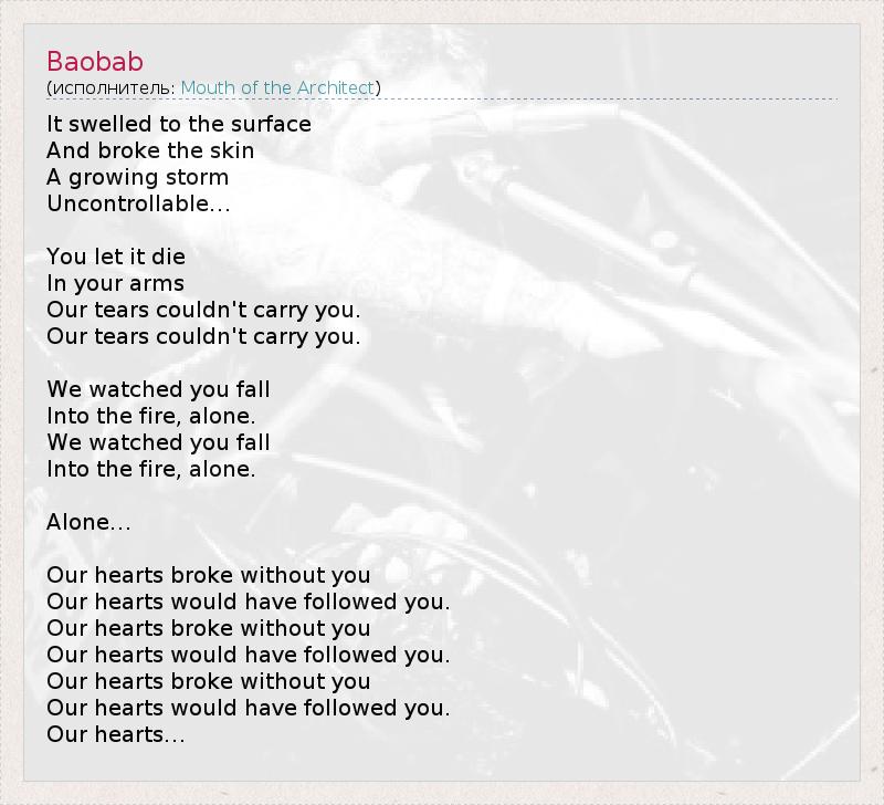 А как ты думаешь, о чем песня "Baobab" ?