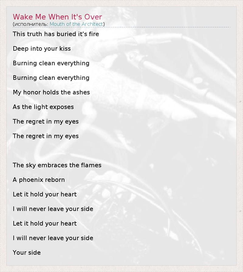 А как ты думаешь, о чем песня "Wake Me When It's Over" ?