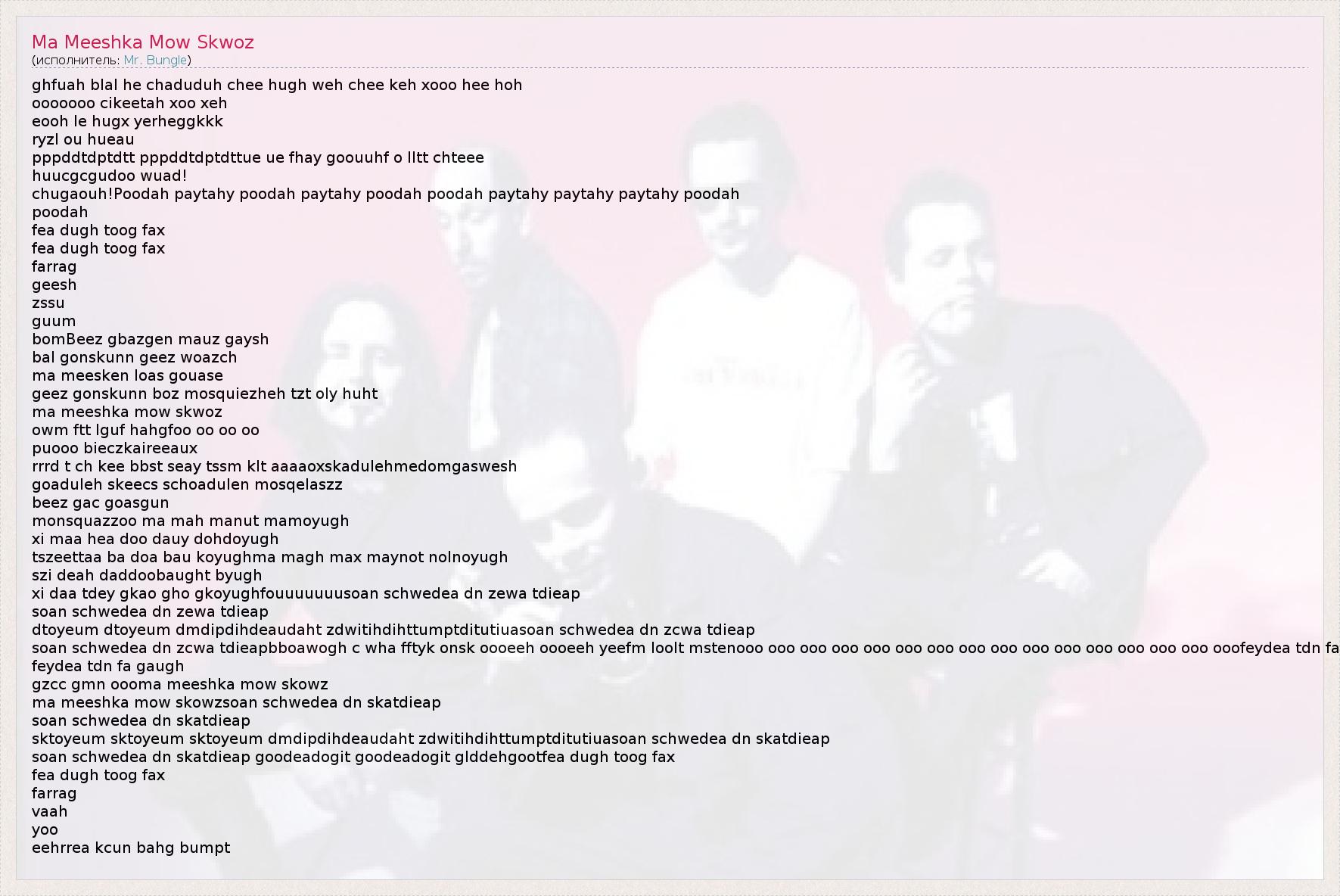 А как ты думаешь, о чем песня "Ma Meeshka Mow Skwoz" ?