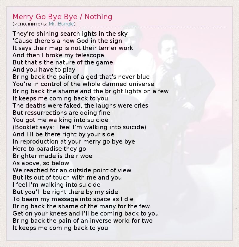 ГлавнаяИсполнителиMr. BungleMerry Go Bye Bye / Nothing