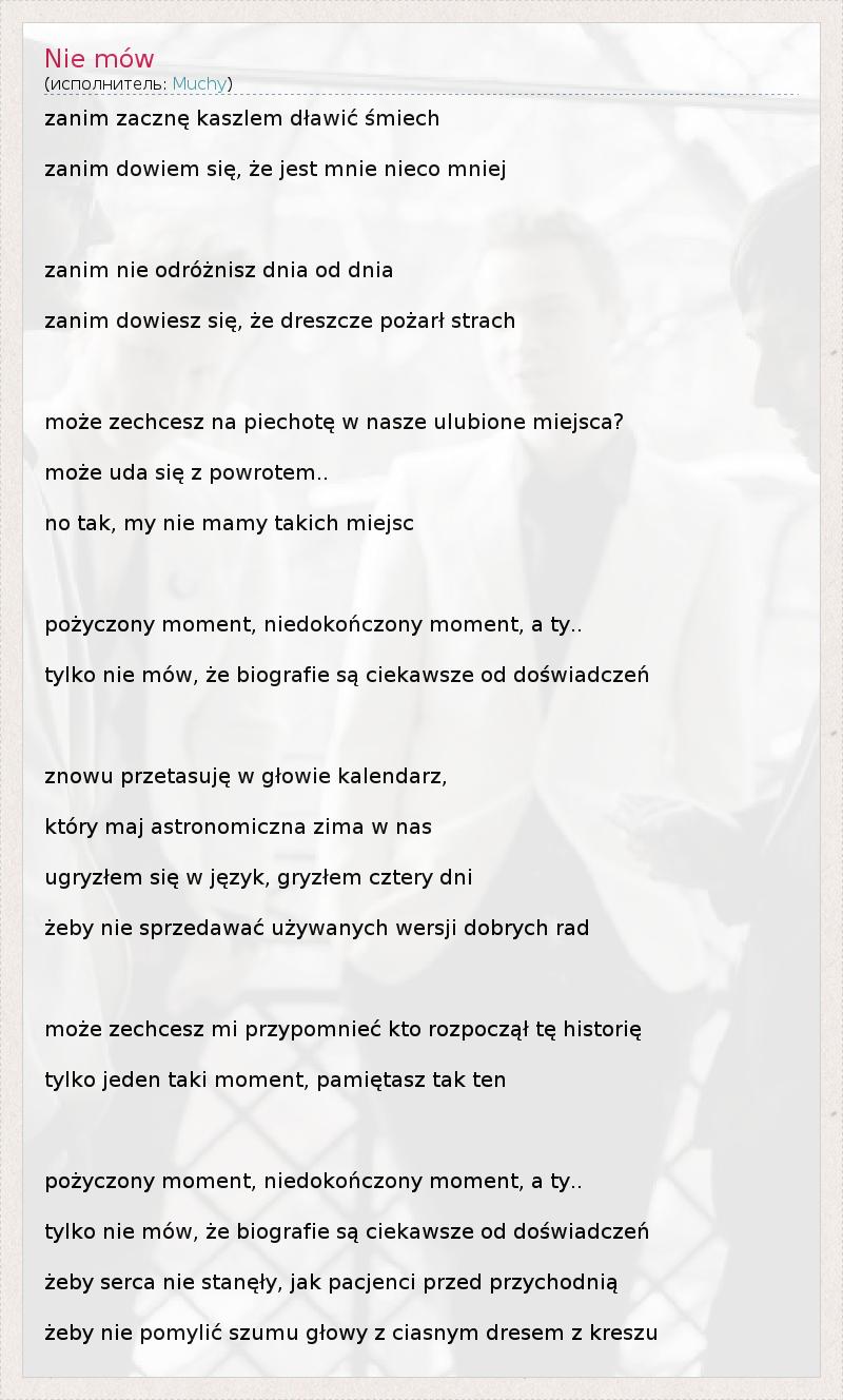 А как ты думаешь, о чем песня "Nie mów" ?