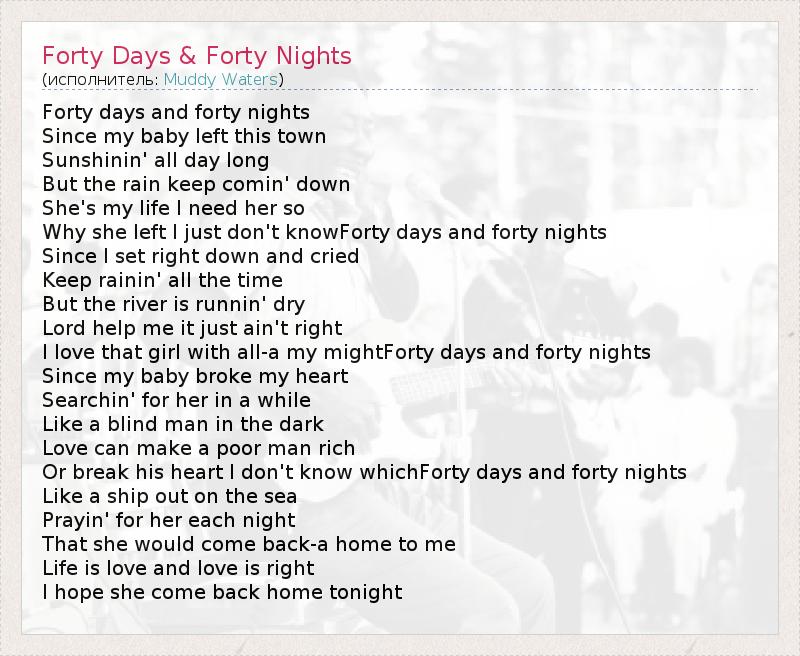 А как ты думаешь, о чем песня "Forty Days & Forty Nights" ?
