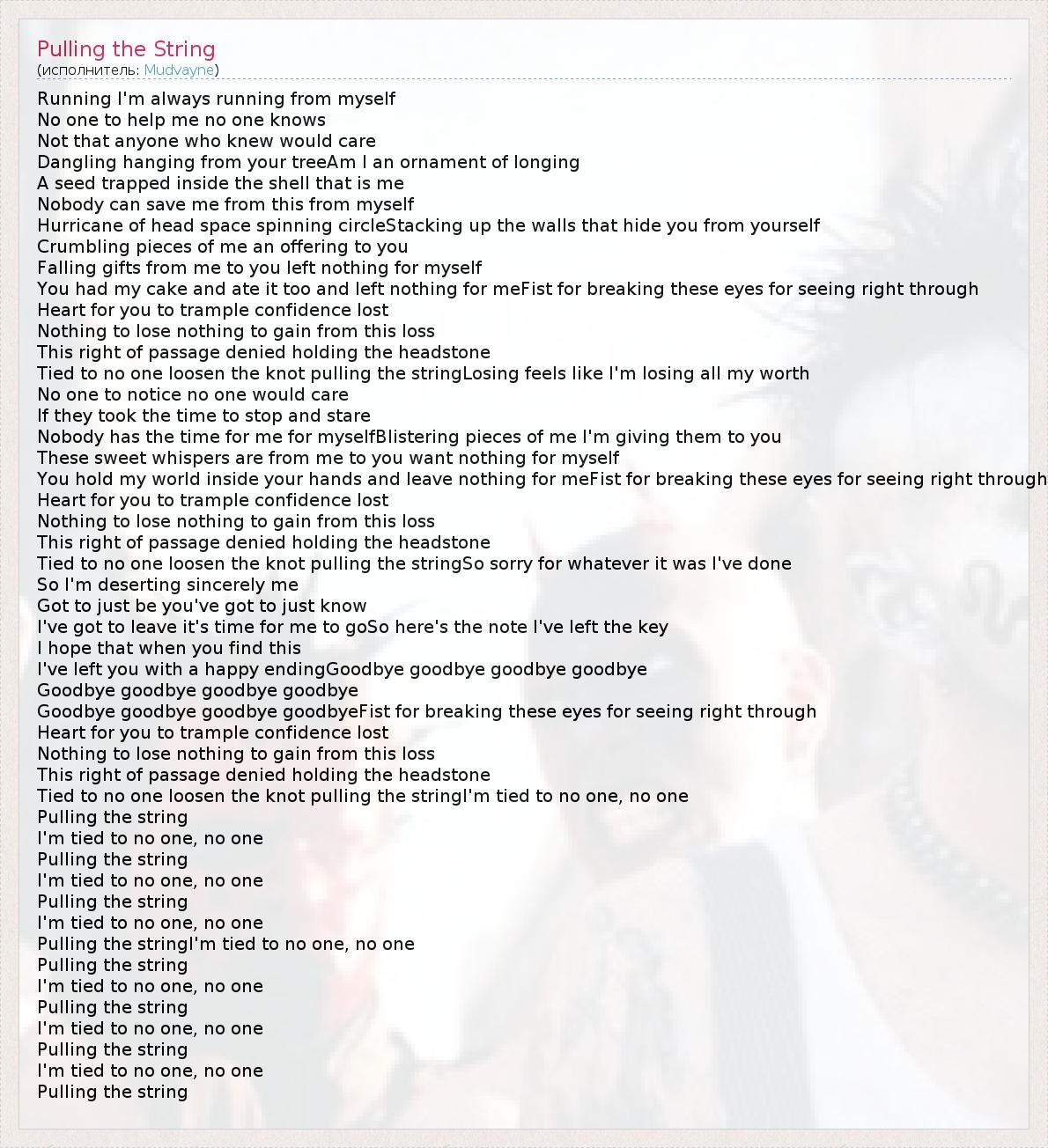 А как ты думаешь, о чем песня "Pulling the String" ?