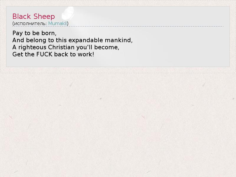 А как ты думаешь, о чем песня "Black Sheep" ?
