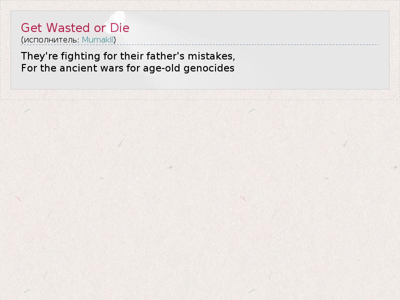 А как ты думаешь, о чем песня "Get Wasted or Die" ?