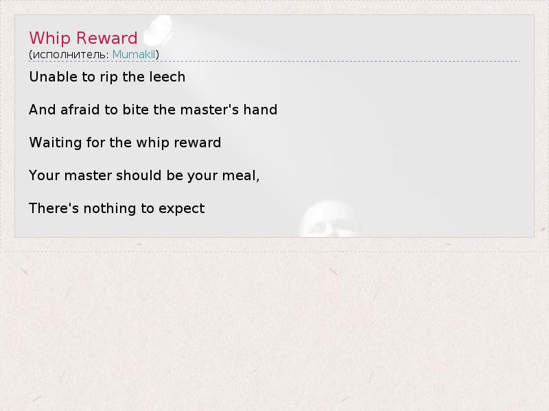 А как ты думаешь, о чем песня "Whip Reward" ?