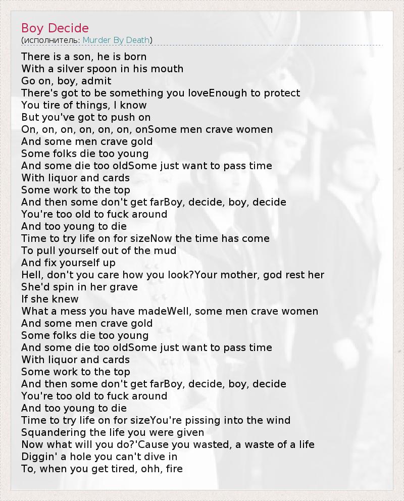 А как ты думаешь, о чем песня "Boy Decide" ?