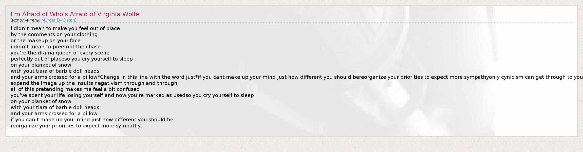 ГлавнаяИсполнителиMurder By DeathI'm Afraid of Who's Afraid of Virginia Wolfe