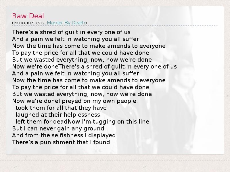 А как ты думаешь, о чем песня "Raw Deal" ?