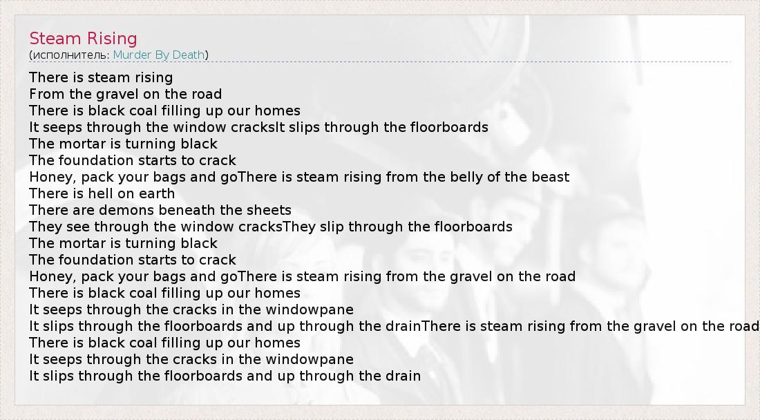 А как ты думаешь, о чем песня "Steam Rising" ?